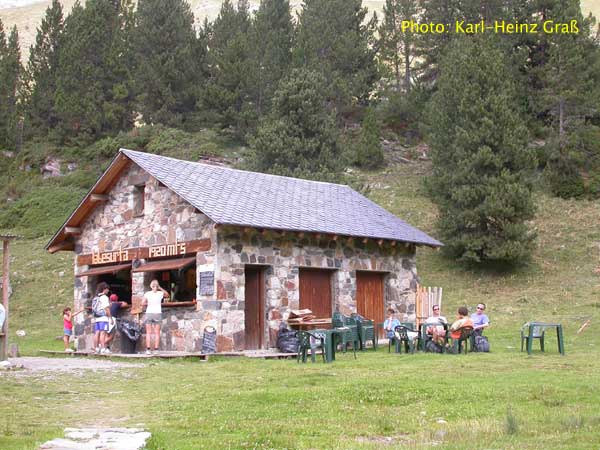 Von Benasque aus kann man noch ein Stück mit dem Auto fahren, am Ende geht es aber auch hier nur per Busverkehr weiter. Der Bus fährt bis La Besurta auf 1890 m. Von hier aus läuft man einen schönen Weg zu den Wiesen des Plan de Aiguallut auf 2020 m.