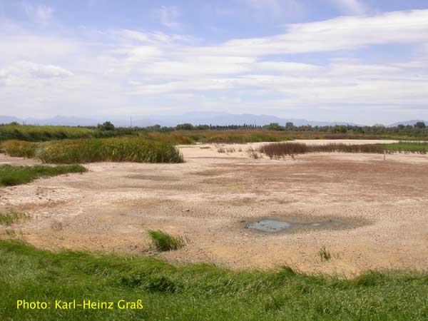 Die "Estanys de Europa" südlich von Empuriabrava waren leider nahezu komplett trocken. In der letzten kleinen Schlammpfütze noch ein paar amerikanische Flusskrebse, kurz vor`m Exitus.