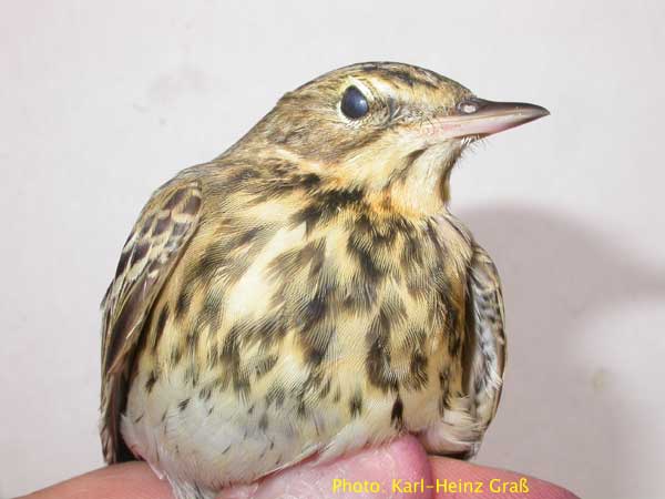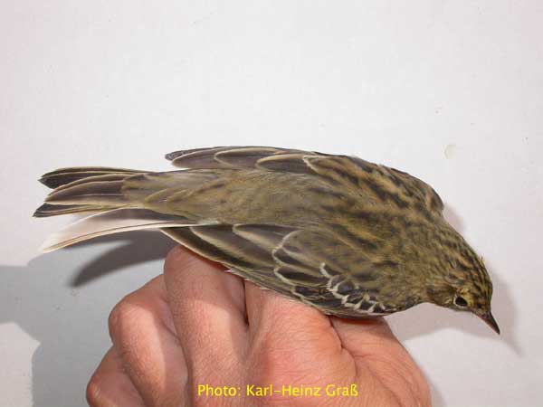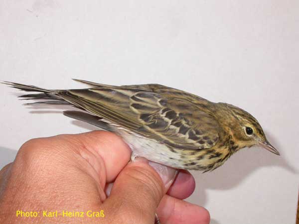 Baumpieper; Erstfang: 27.08.2005; Ringnummer: A982996; diesjähriger Vogel