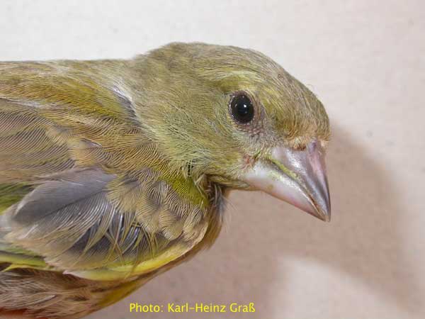 Grünfink (Weibchen): Erstfang 10.06.2006 - Ringnummer: 81037496 Alter: 5 ("vorjährig")